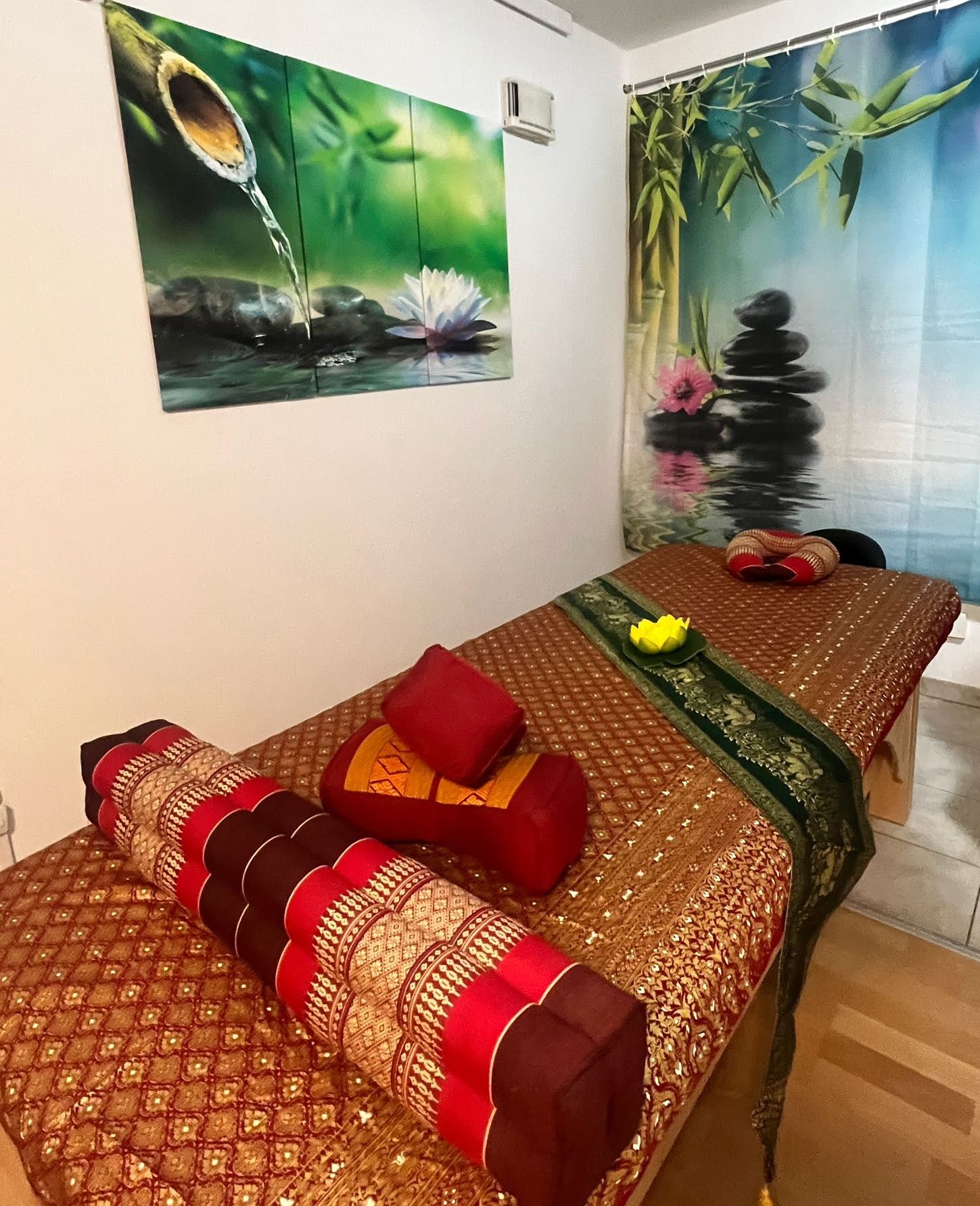 Thaimassage ohne Öl: Traditionelle Technik, die Druckpunkte aktiviert und den Energiefluss im Körper verbessert. Perfekt zur Stressreduktion und Entspannung.